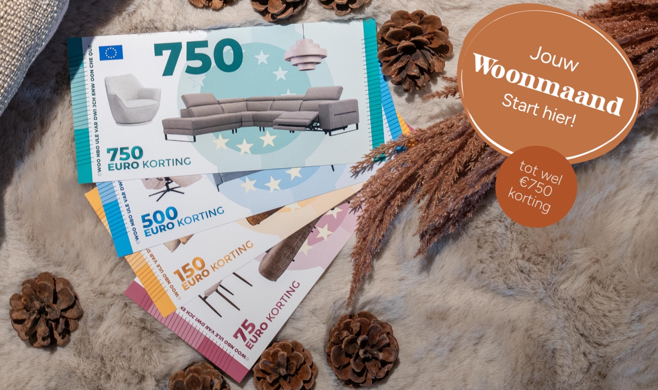Simpel! Bij aankoop van jouw favoriete meubels stapel je jouw korting op. En hier is het leuke deel: hoe hoger het bedrag, hoe hoger de korting. De korting loopt op tot wel €750,-!